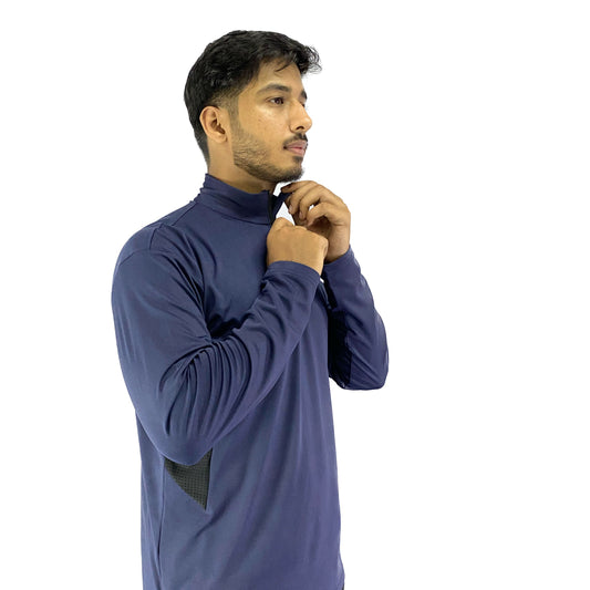 A standout in our athlete wear lineup. This stylish piece blends eye-catching design with performance-driven construction, ideal for chilly training sessions. Experience unrestricted movement with 4-way stretch, while side netting enhances ventilation for breathability. The soft-touch fabric ensures a comfortable feel, and strategically placed back panels add functionality and style. The quarter-zip features a smooth zipper with crafty stoppers for irritation-free comfort, ensuring a perfect fit around the neck. Elevate your training with style and comfort.